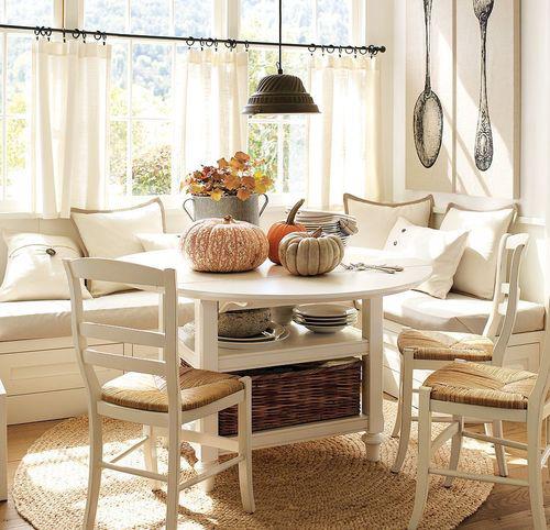 Every square inch counts. Now you not only have storage in a bench seat, but inside the table as well. I love baskets for holding all those small items I don’t use very much… Cookie cutters, rolling pins, cherry pitters, etc. It would be a great place to store table linens as well. Purchase the table at Potterybarn.com